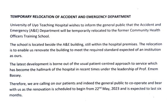 UUTH BOARD MEMBERS ASSUME PROFESSORSHIP POSITIONS Chief Medical Director, University of Uyo Teaching Hospital, Dr. Emem Bassey has […]